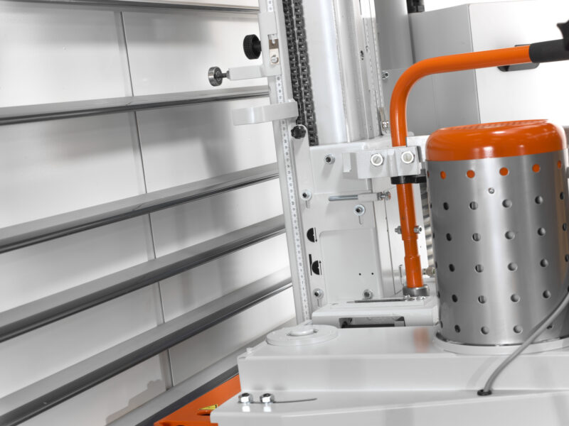 De Harwi Helios 60 is standaard uitgevoerd met een strokenaanslag en programmanokken. Dit zorgt ervoor dat de Harwi Helios 60 verticale platenzaag repeterende zaagwerkzaamheden snel en efficiënt kan uitvoeren. De afkortgeleiders en ergonomische zaaghandel zorgen voor een goede houding van de operator. Uw medewerkers werken efficiënt en gezond.